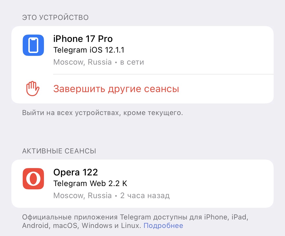Так вы сможете входить в Telegram с нового устройства через подтверждение внутри уже запущенного приложения.