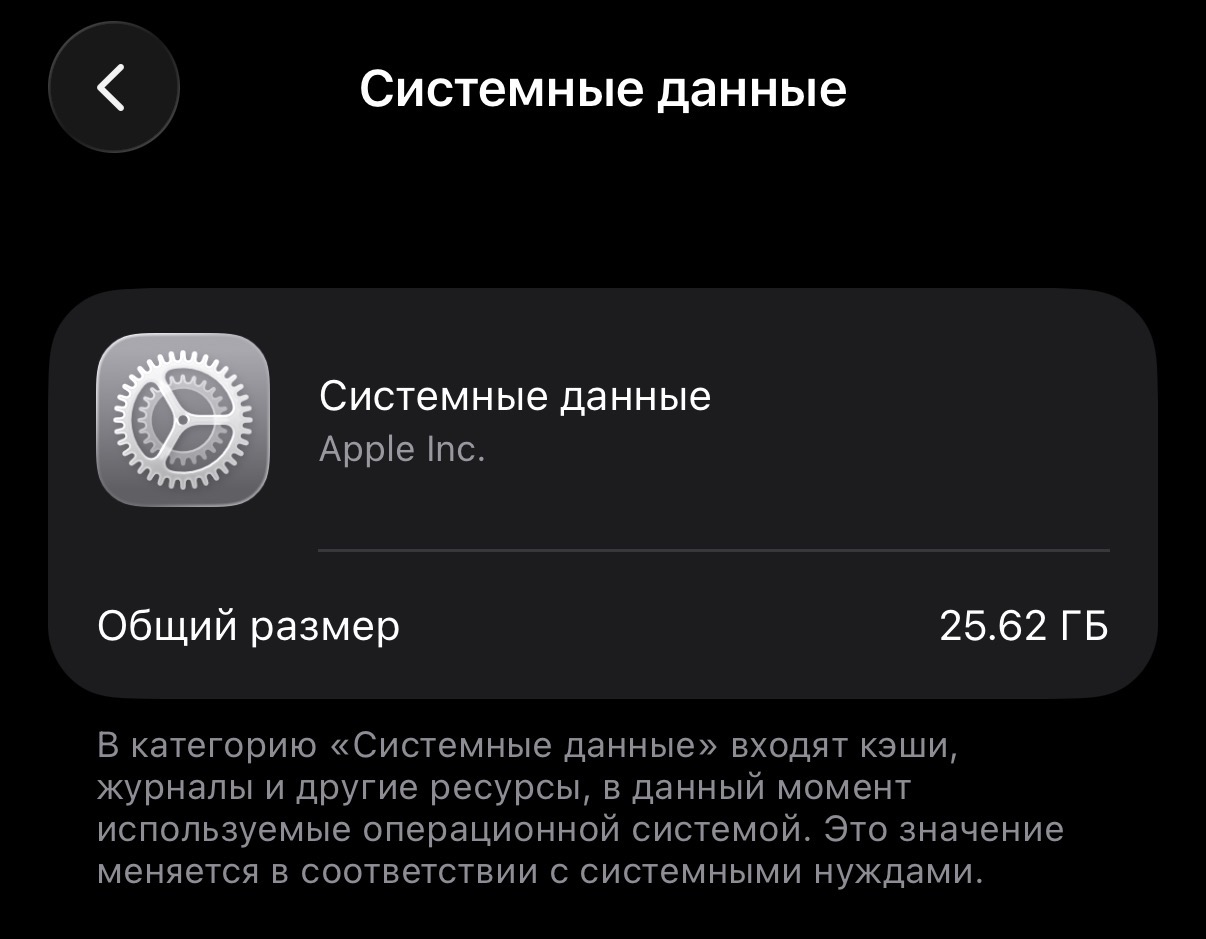 Это самый проблемный раздел в Хранилище iPhone. Бывает, что Системные данные внезапно занимают 15, 25 или даже 40 ГБ, и непонятно, что делать. Лучшие умы годами искали решение проблемы, и, к сожалению, быстрого исправления у неё нет. Кроме полного сброса iPhone, а этого мы делать не будем.