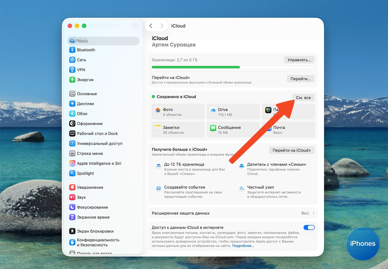 3. Отключите опцию Найти Mac. Для этого перейдите в Системные настройки – Учетная запись Apple – iCloud. Нажмите См. все и отключите тумблер Найти Mac.