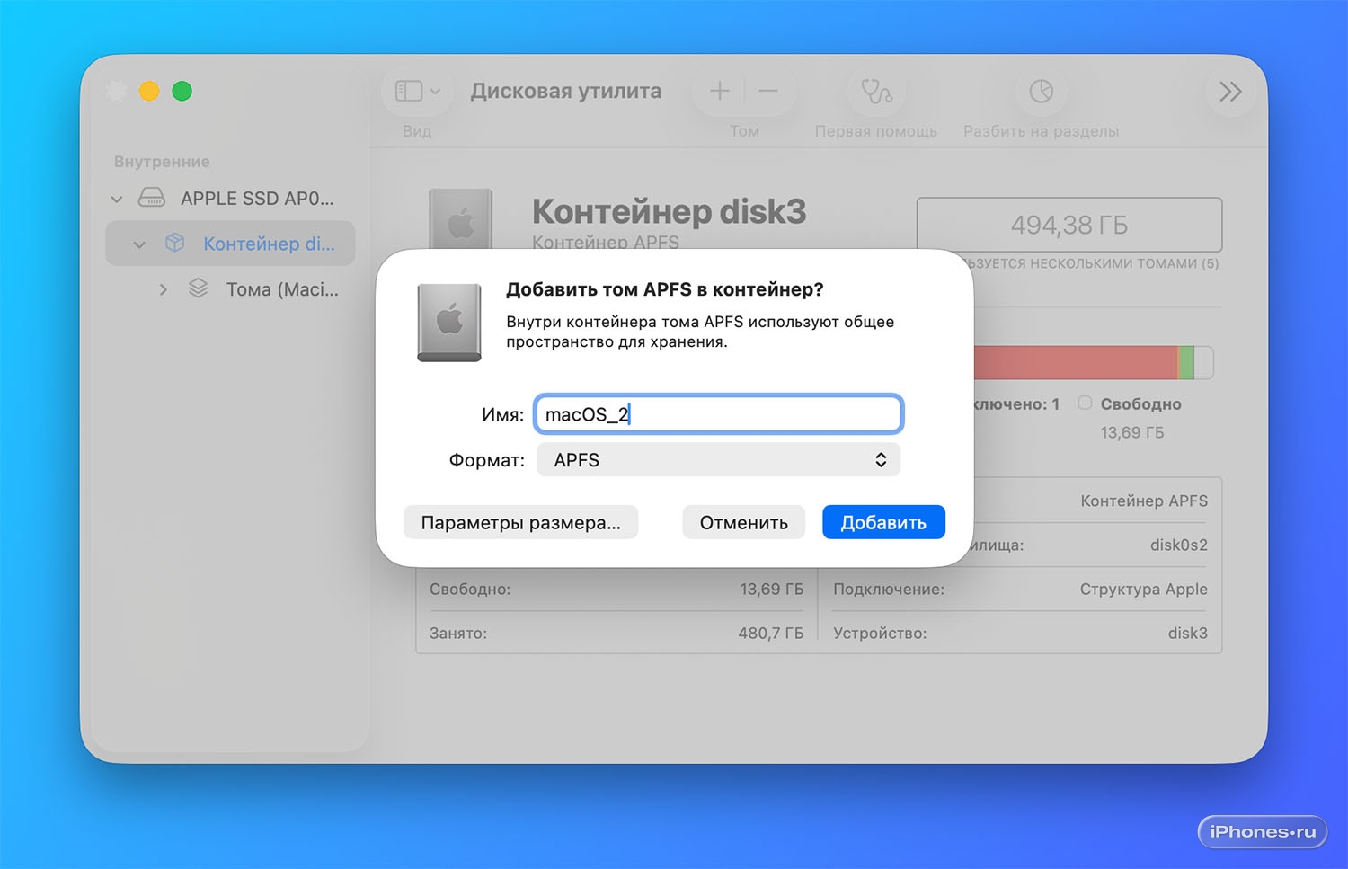 ▶ том – используют в большинстве случаев, чтобы получить несколько подразделов в одном разделе. Используют для установки разных версий macOS.
