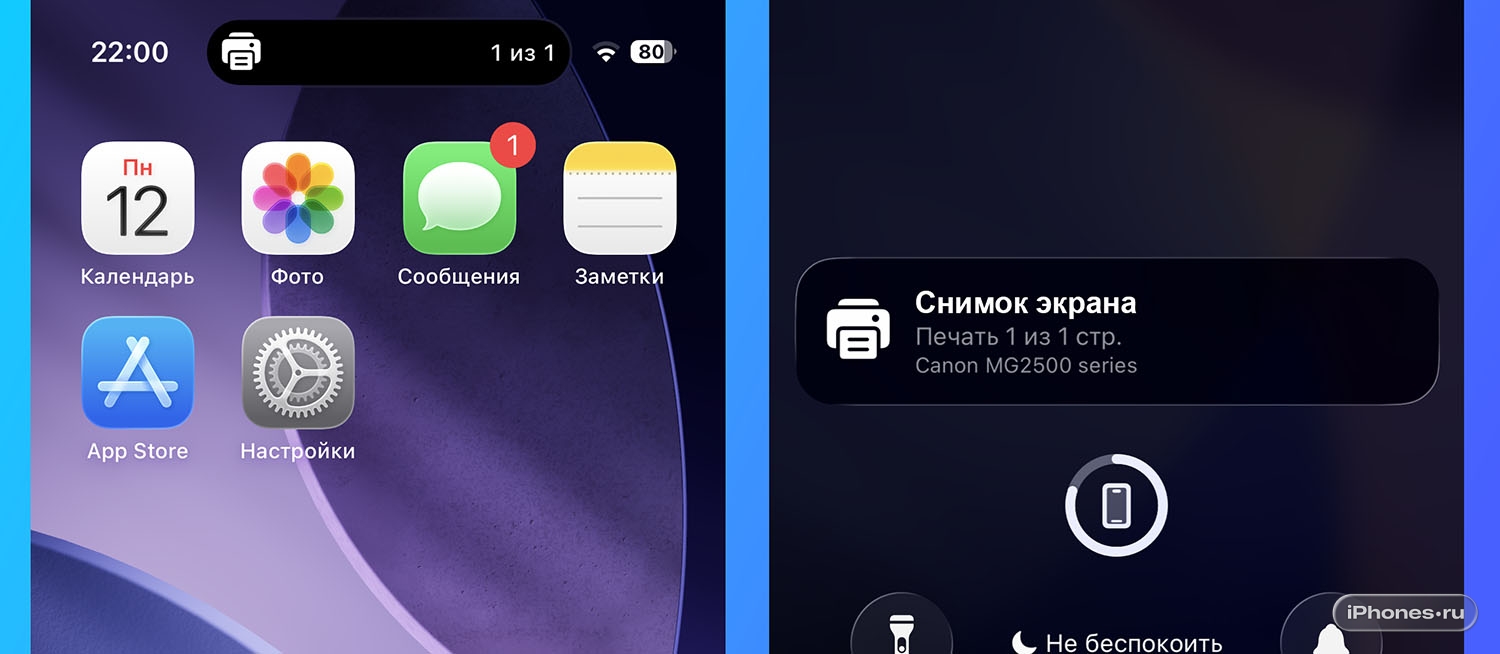 Статус печати и очередь можно видеть в динамическом острове или на экране блокировки.