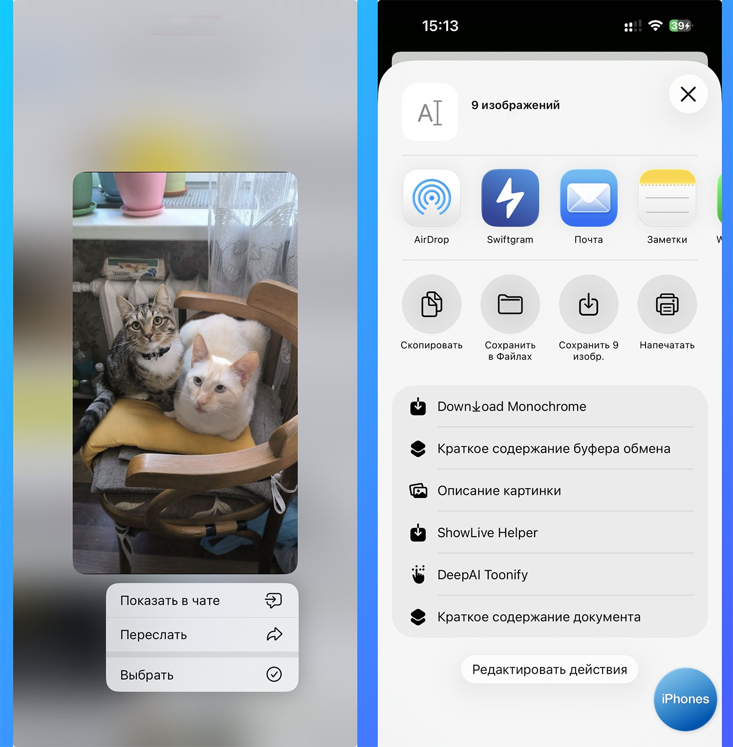 ► на Айфоне откройте чат, зажмите одновременно боковую кнопку и кнопку увеличения громкости, чтобы сохранить скриншот. Можно делать длинные скриншоты или записать скринкаст.
