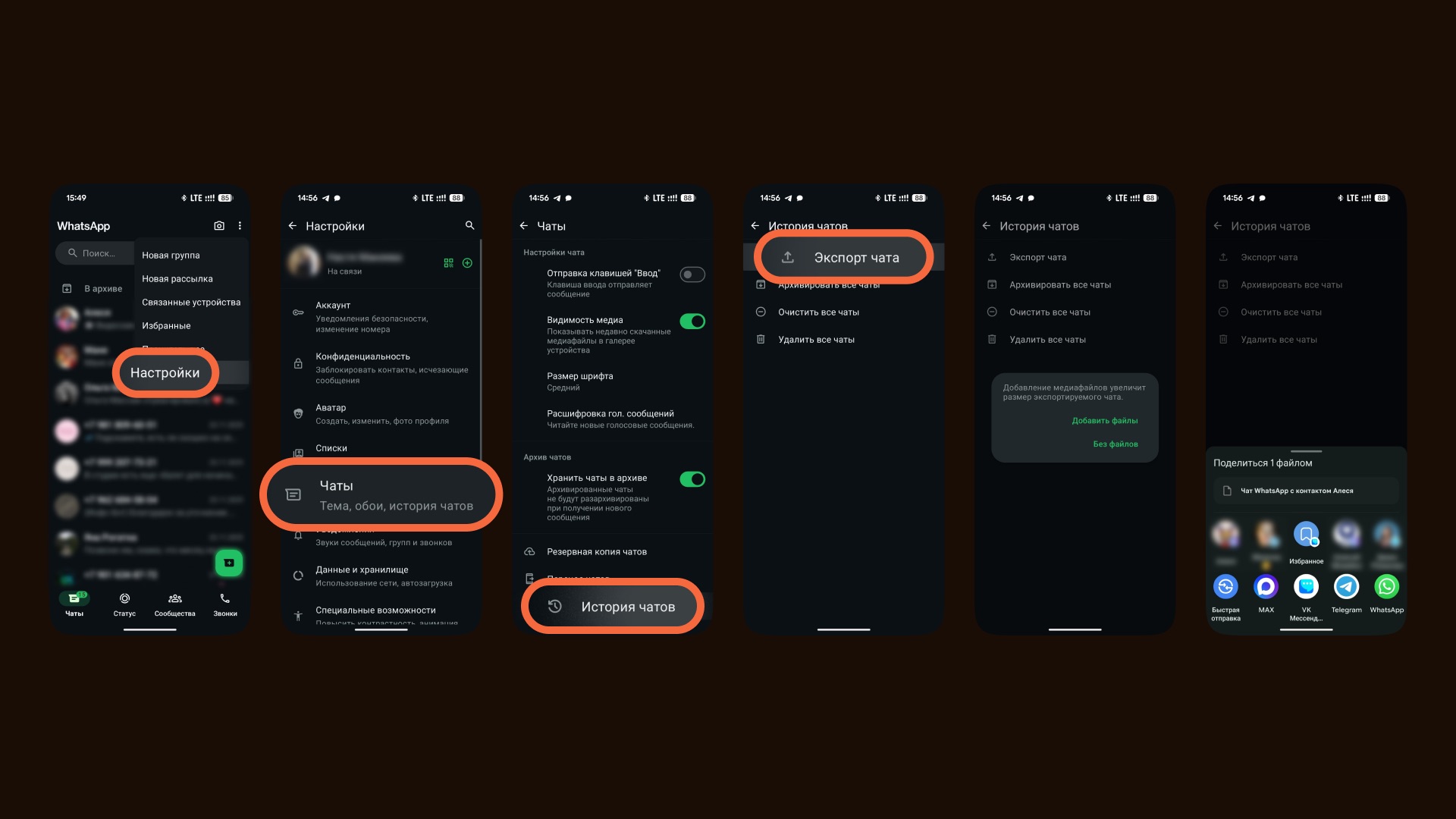 Но общий маршрут один: настройки → чаты → экспорт → выбрать чат → выбрать способ отправки → указать MAX.