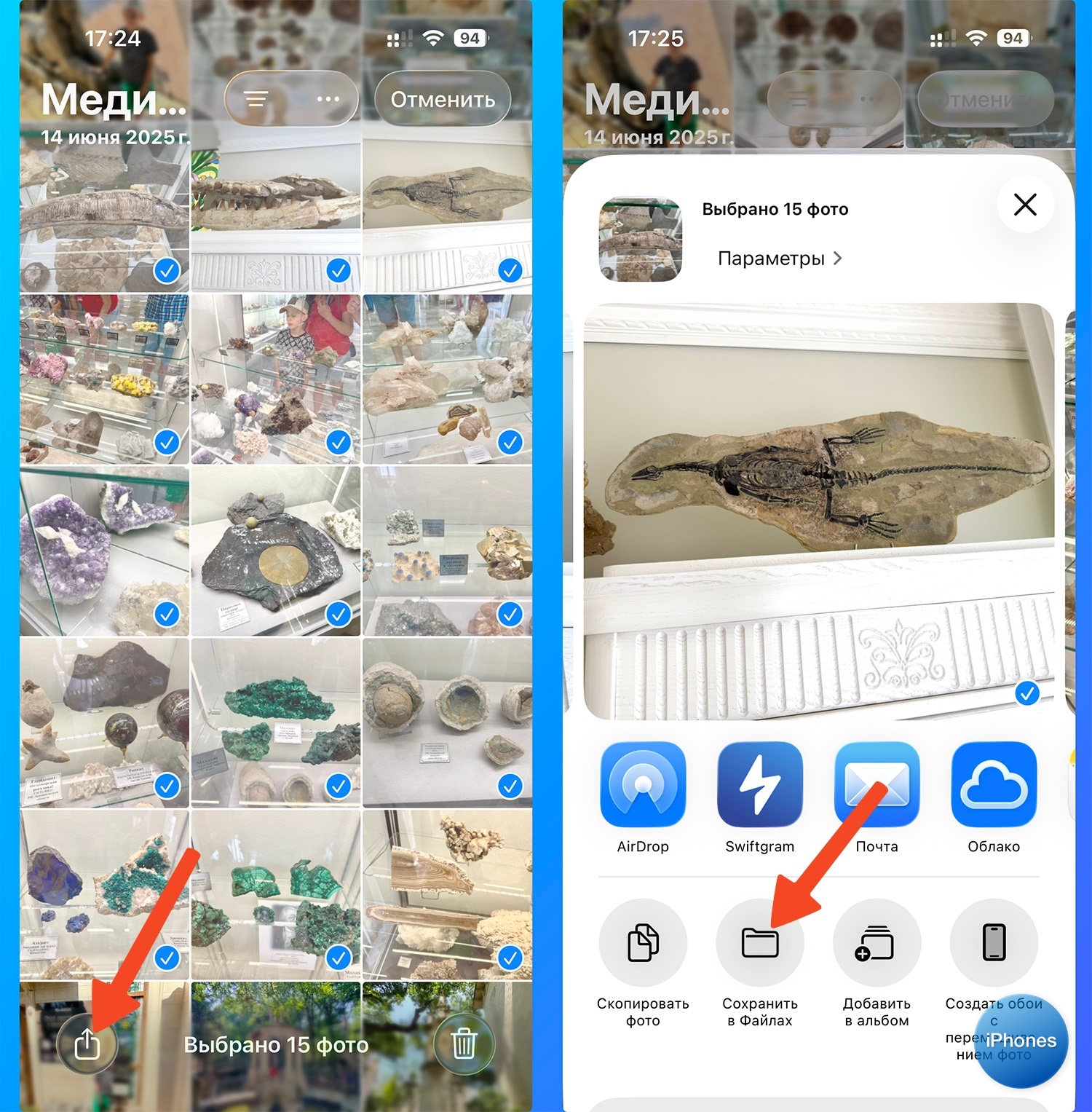 4. Нажмите Поделиться – Сохранить в Файлы.