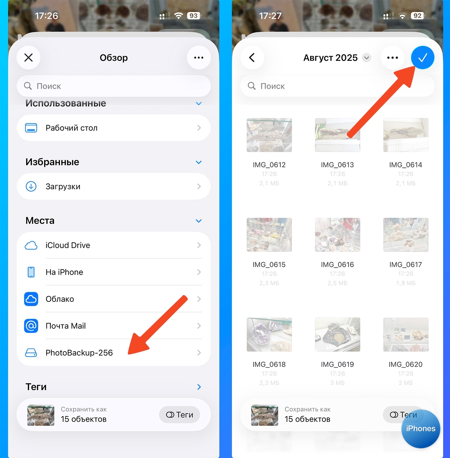 3. Выделите фото и видео, которые хотите сохранить.