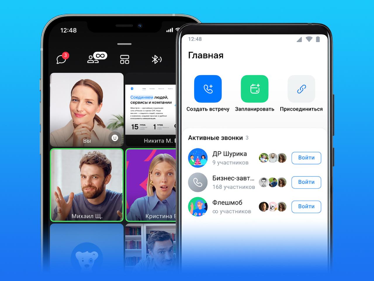 Из других особенностей: в VK Звонках можно делиться экраном, отправлять реакции и использовать эффекты и фоны, чтобы сделать разговоры живее. Также доступны автосубтитры, расшифровка бесед и планирование встреч.