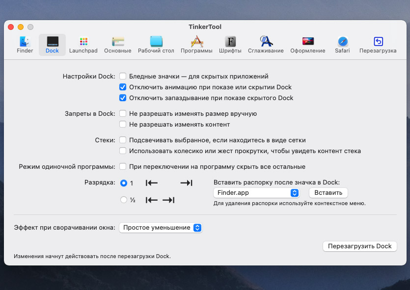 Если какой-то эффект не понравится, сможете его вернуть в TinkerTool.