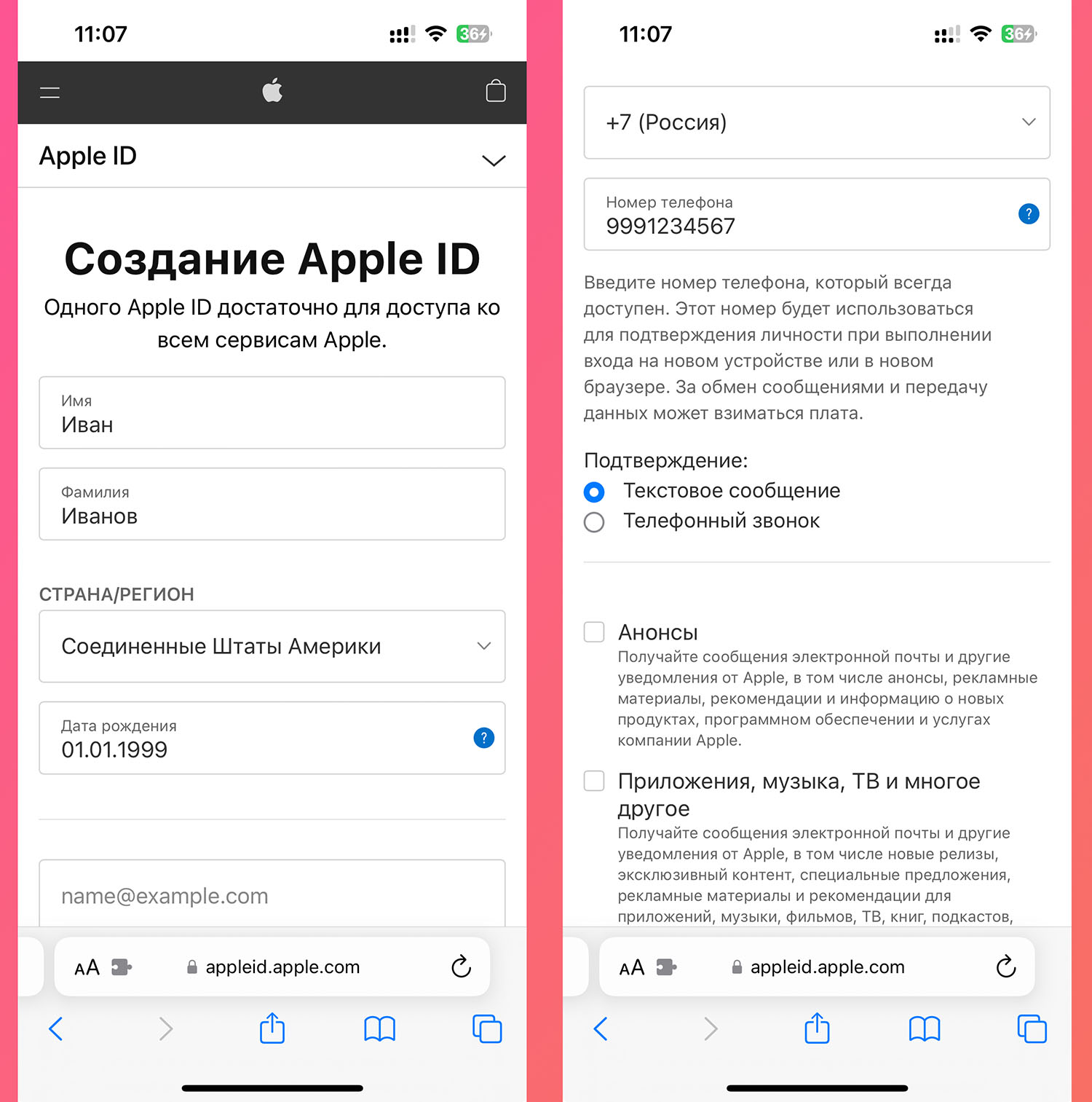 ▶ Используйте новый адрес почты и российский номер телефона, который не привязывали к другим Apple ID.