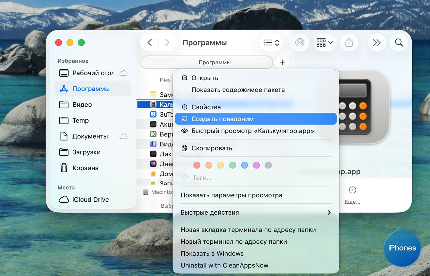 ▶ В папке Приложения создайте псевдонимы (ярлыки) для нужных программ.