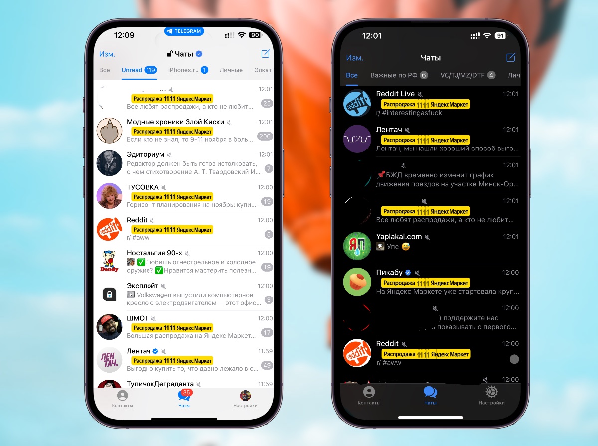 Массовая реклама распродажи 11.11 на Яндекс Маркете во всех каналах Telegram. Что ещё нужно для счастья?