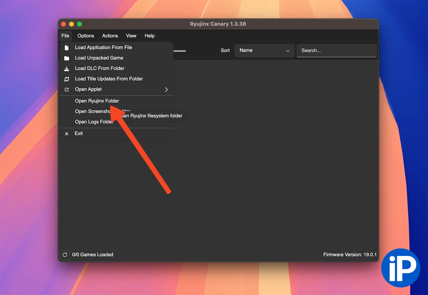 7. Когда все импортировано, подключите iPhone или iPad к компьютеру при помощи кабеля, а в приложении Ryujinx выберите пункт меню File – Open Ryujinx folder.