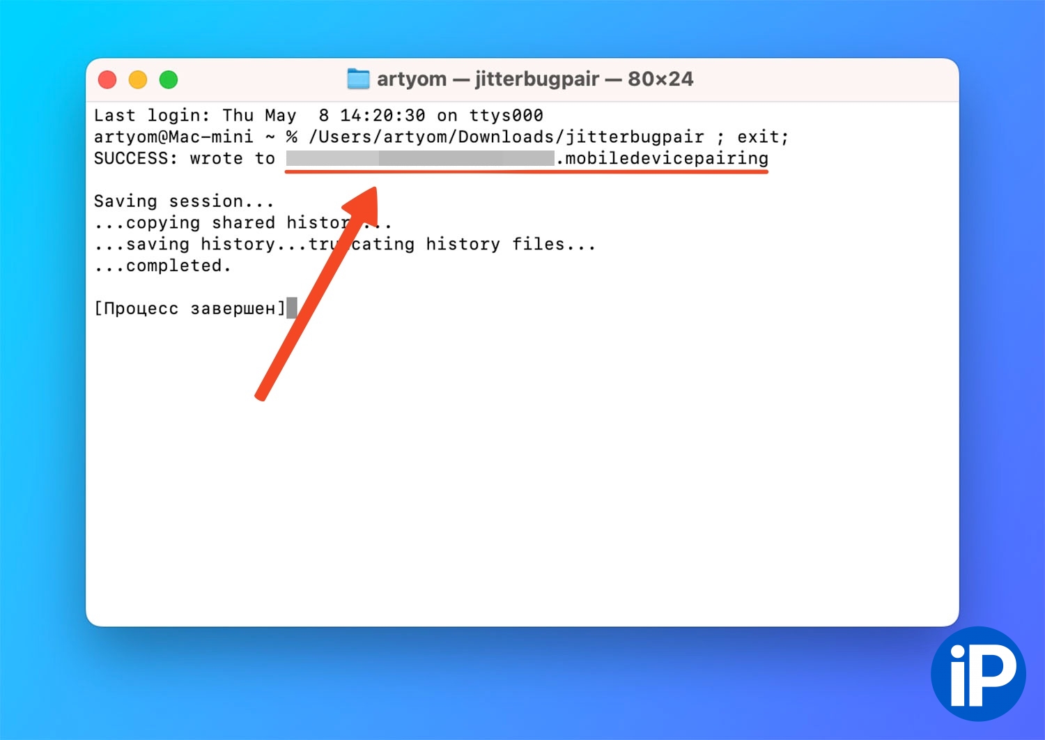 3. Запустите JitterBug второй раз, чтобы он сгенерировал файл *.mobiledevicepairing для вашего устроства.