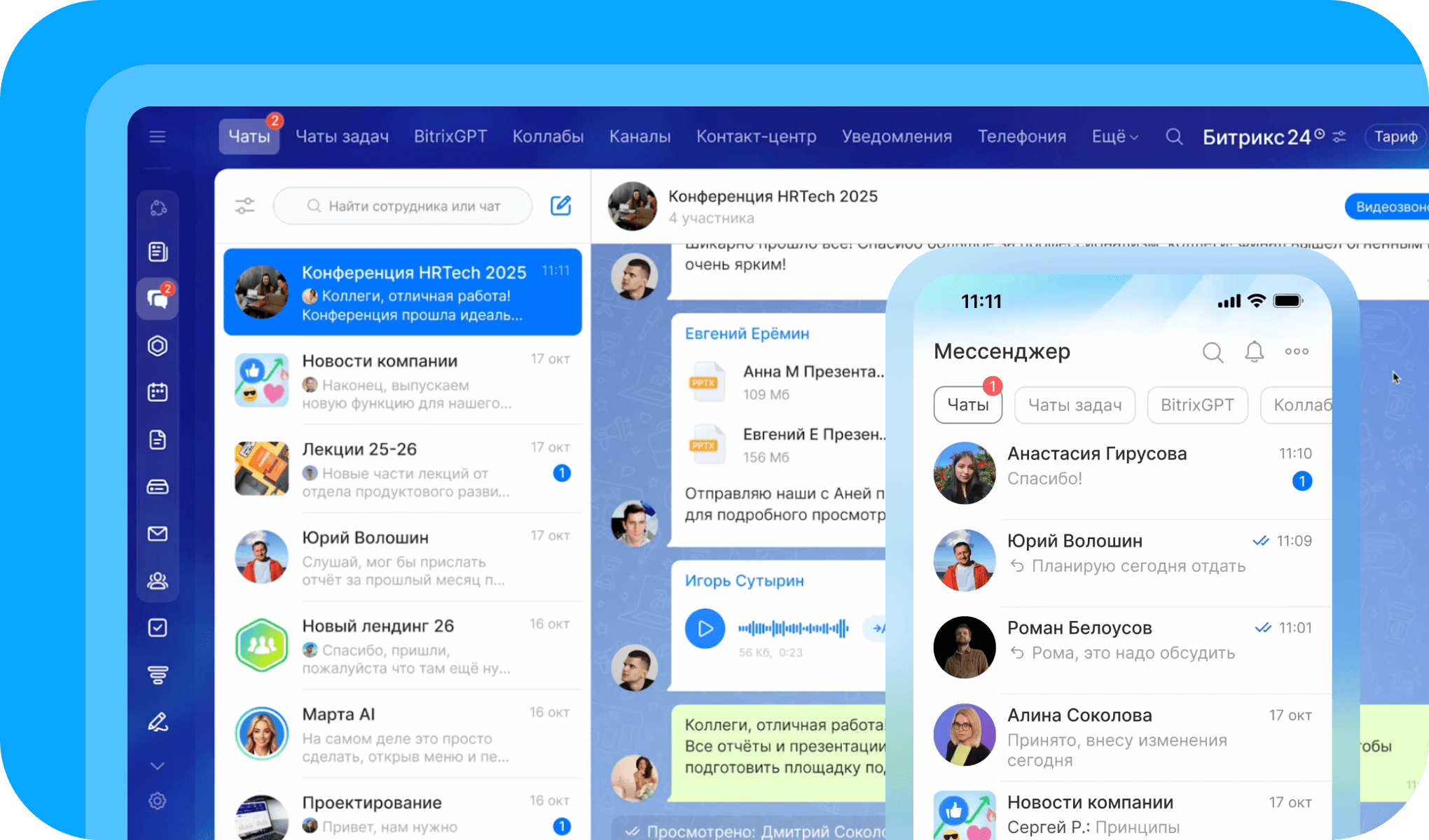 Ниже подборка корпоративных мессенджеров, которые реально используют компании в России в 2026 году: Битрикс24, VK Teams, МТС Линк Чаты, eXpress и TrueConf.
