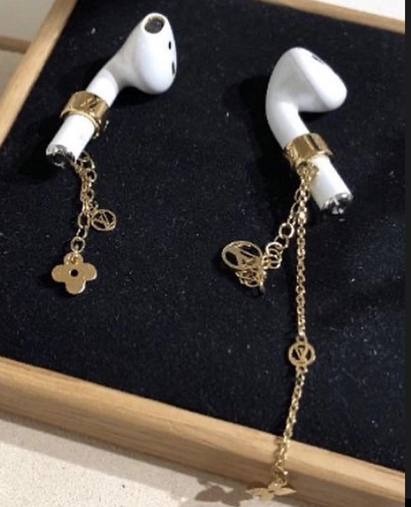 Пользователь Instagram с ником @supreme_leaks_news опубликовал рендер золотых серёжек для AirPods. Угадайте, кто их выпустит? Louis Vuitton!