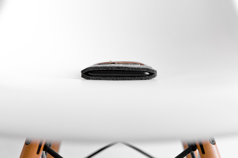 Это, в целом, стандартный чехол-карман, но с отделением для карт или пары купюр. Мягкий и плотный войлок сохранит устройство в случае падения.