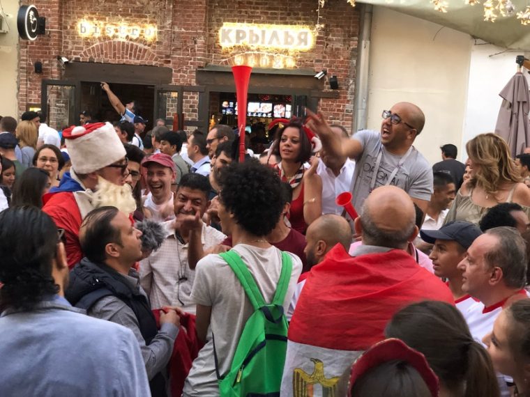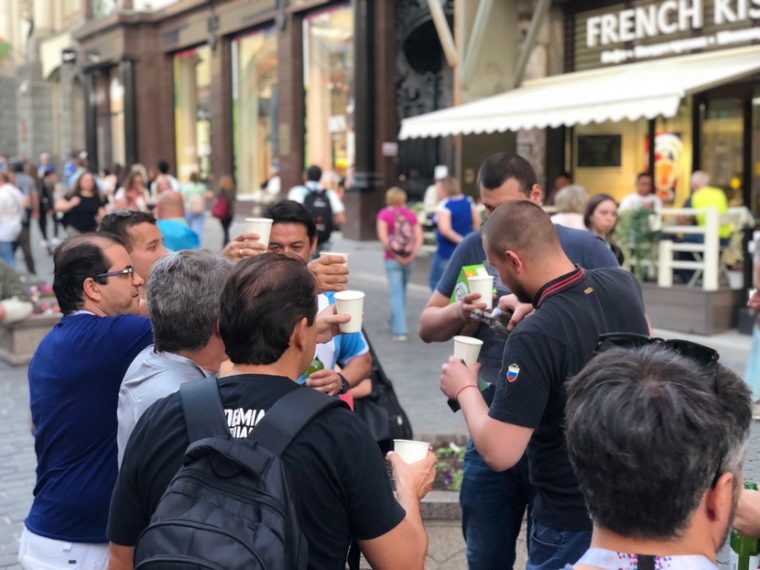 Иностранные футбольные болельщики готовы отметить очередную победу со всеми. Как и выпить, так и просто сделать парочку селфи. Это же память. Такого ещё в их жизни не было.