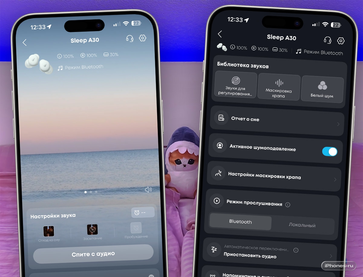 Плюсы по сравнению с прошлым поколением очевидны. Появился полноценный шумодав, умный кейс, который реально помогает сгладить храп, более приятный звук в Bluetooth и отдельный ИИ-режим аудио.