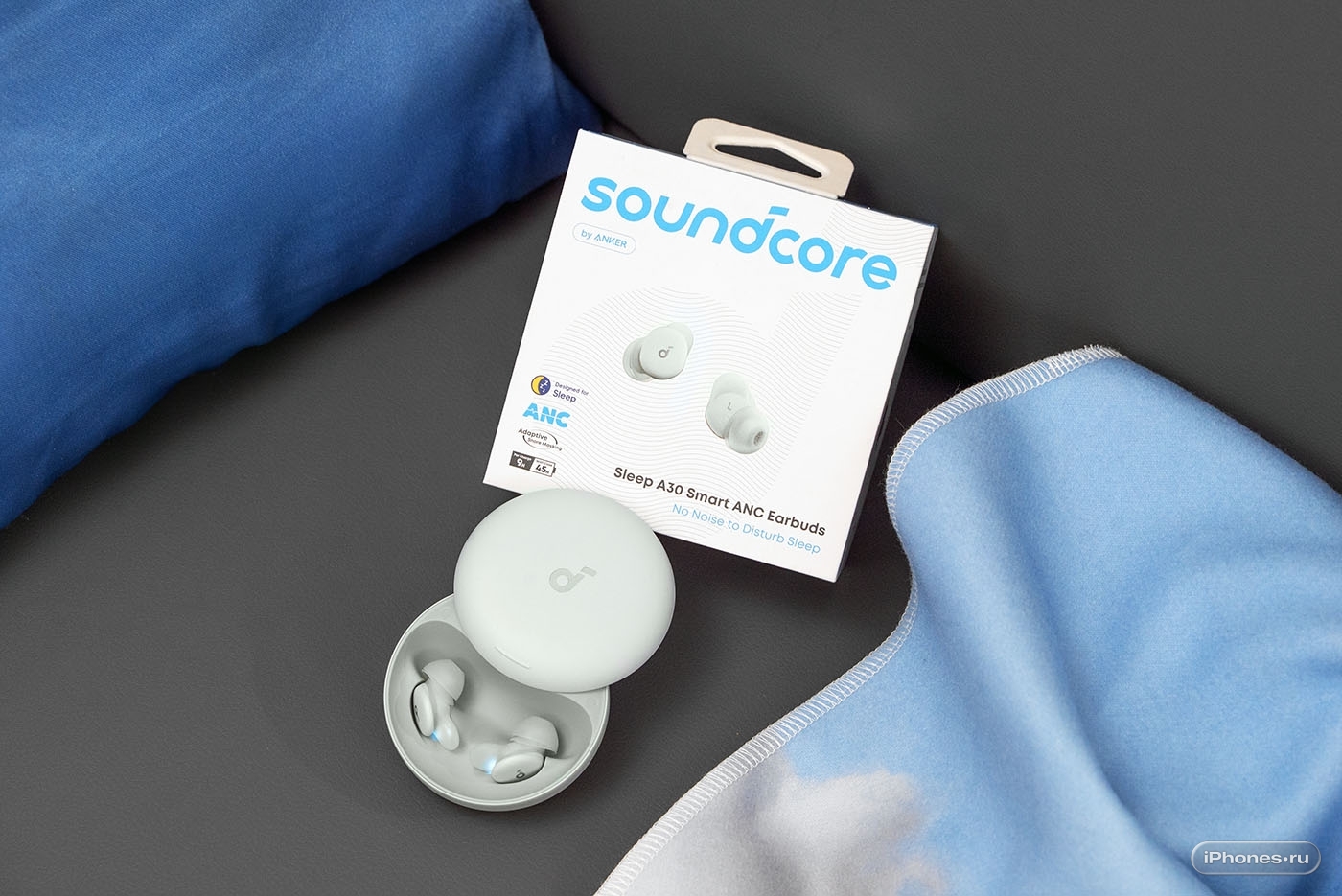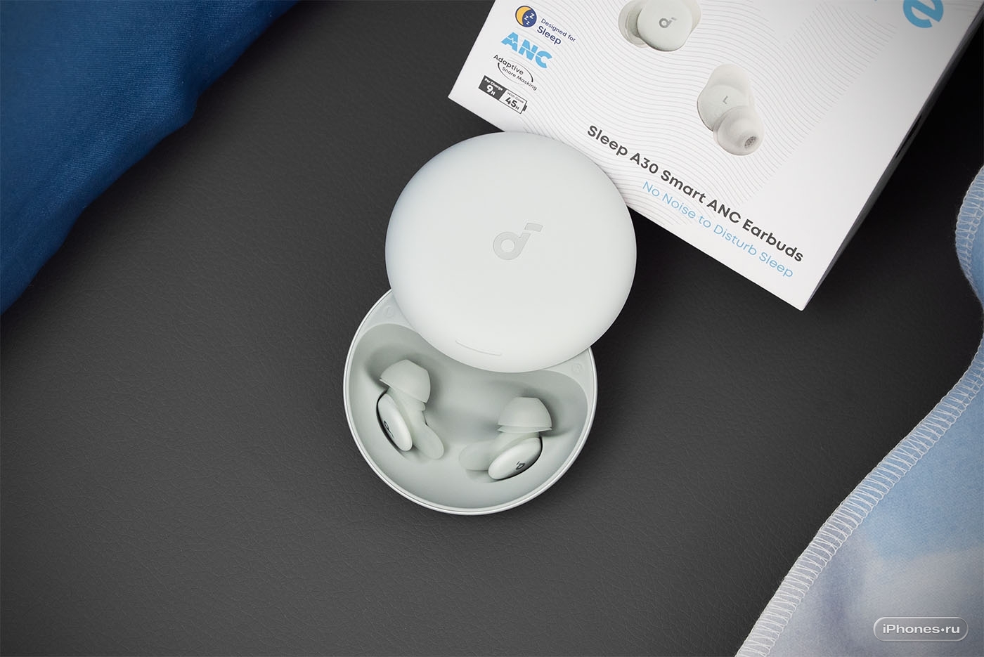 В прошлый раз это были Anker Soundcore Sleep A20. Очень маленькие «затычки», в которых реально можно проспать ночь на боку и не искать их утром по всей кровати. Их дело продолжает новое поколение, Anker Soundcore Sleep A30.