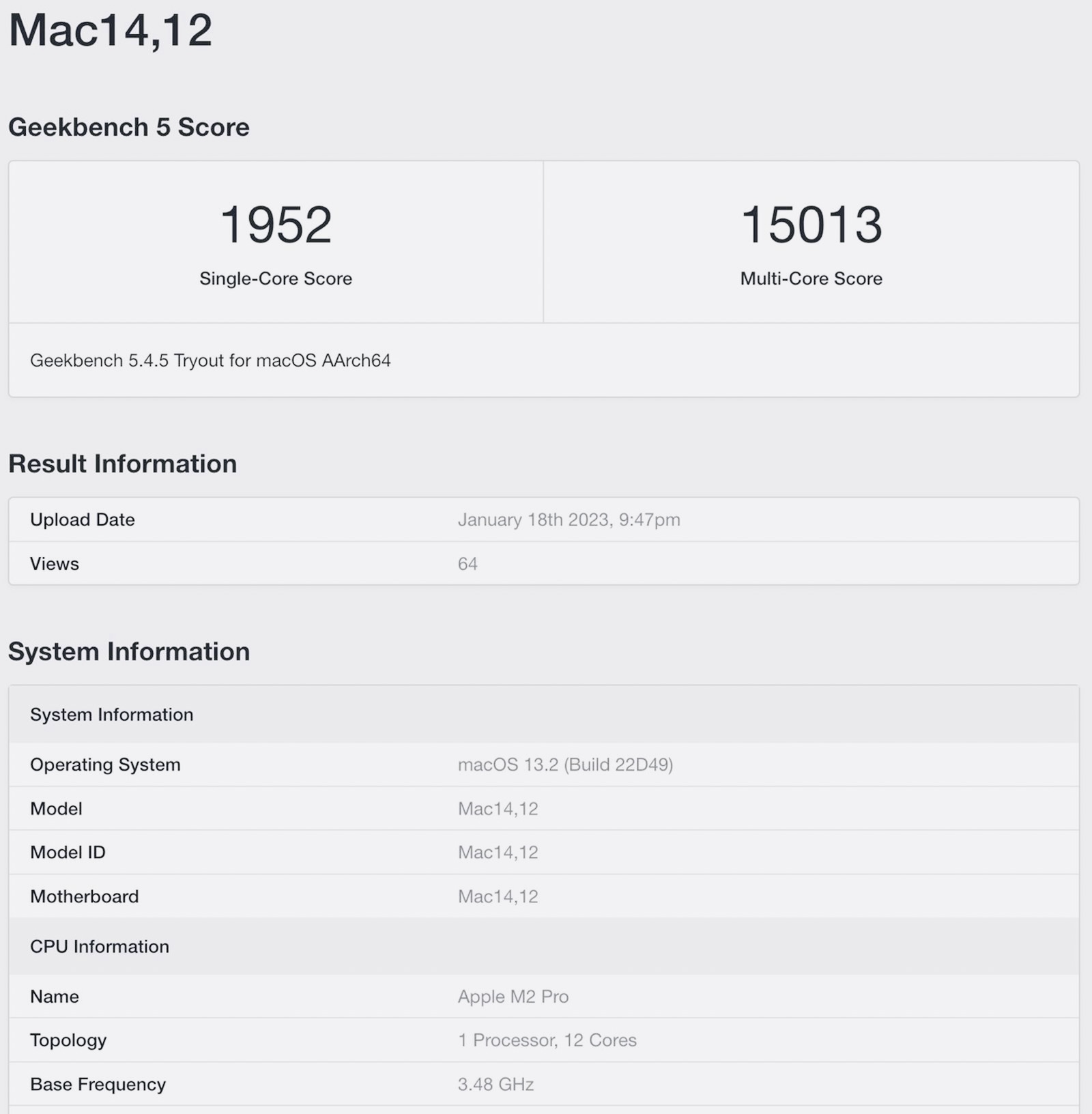 Не успела Apple представить Mac mini с процессорами M2/M2 Pro, а новинка уже появилась в Geekbench.