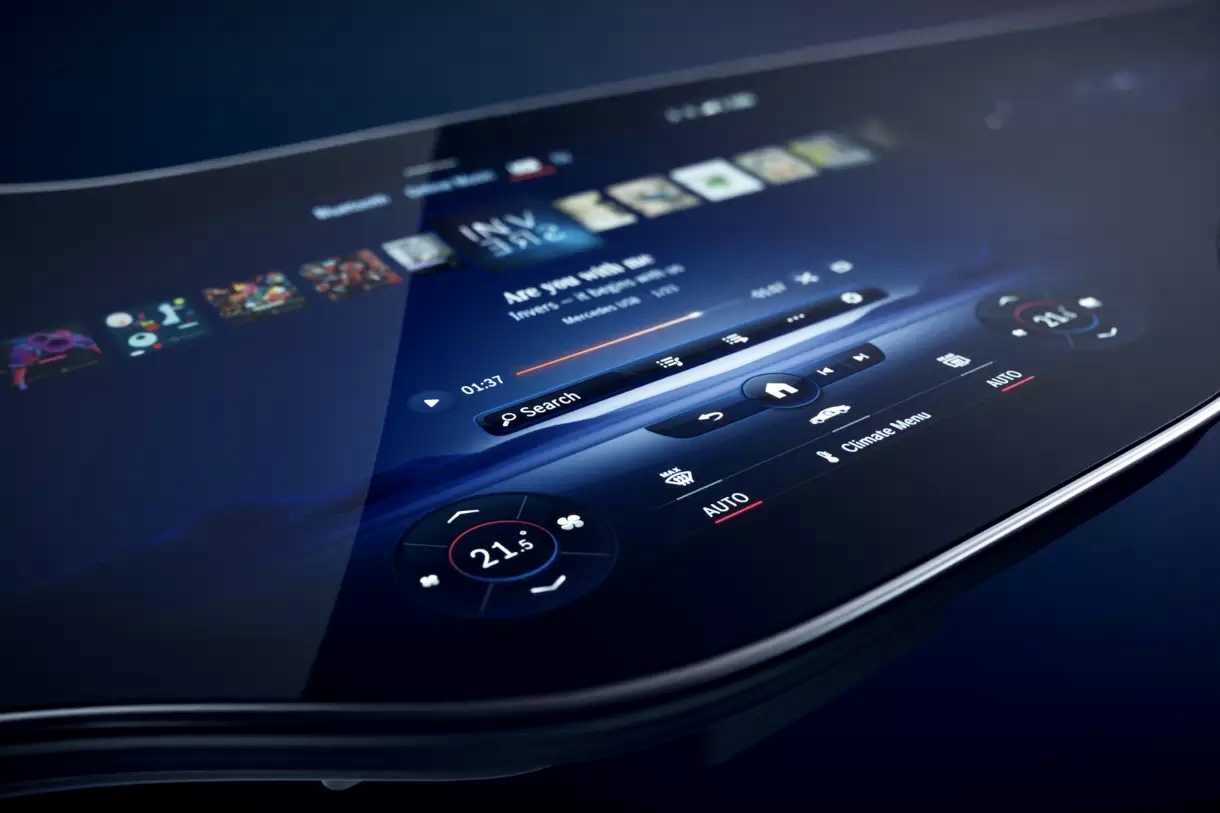 Он занимает всю переднюю панель и оснащен системой искусственного интеллекта. Новинка появится в электрокаре EQS в 2022 году.
