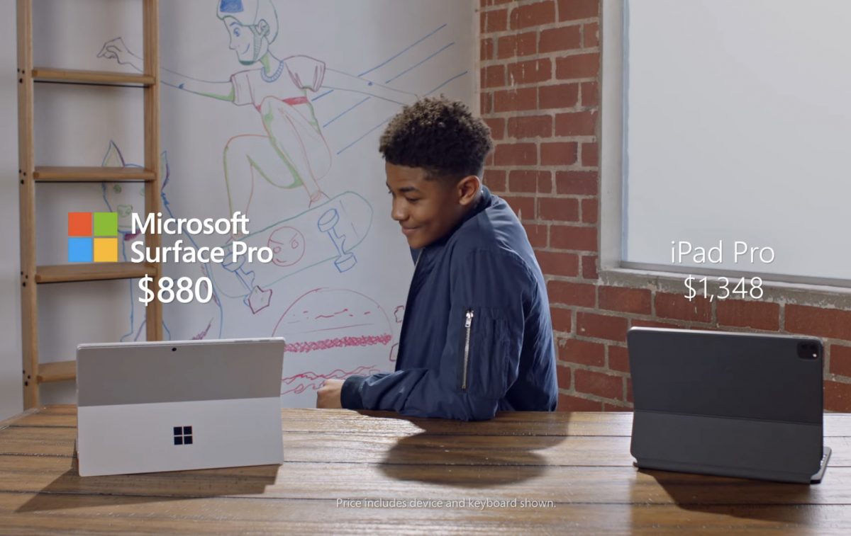 Microsoft опубликовала новую рекламу, в которой в очередной раз попыталась найти достоинства Surface Pro 7 на фоне iPad Pro.