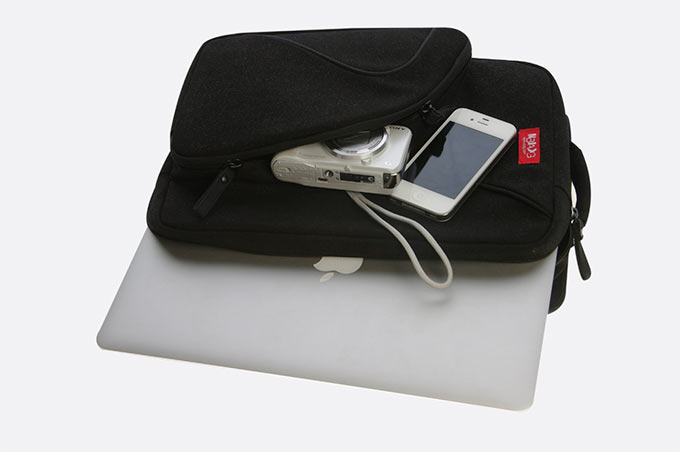 В черную сумку легко помещается 11,6-дюймовый MacBook Air в чехле, либо плотно войдет 13-дюймовый Air или Retina MakBook Pro