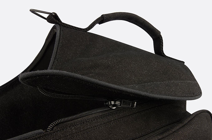 Добавлю, что внешний материал сумки — это достаточно жесткий для каждодневной носки без негативных последствий хлопок, который при этом весьма приятен на ощупь, а внутри используется нейлон.