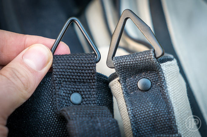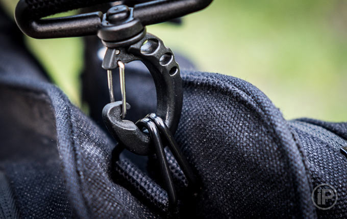 Карабины пластиковые, но нареканий они не вызывали еще со времени оригинальной MIXBAG, разве что было немного тяжело отсоединять от плоских пластиковых колец.