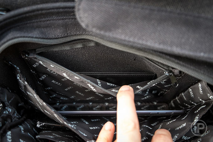 Отдел для планшета тоже стал шире, плюс на том же месте сохранился секретный кармашек на замке: