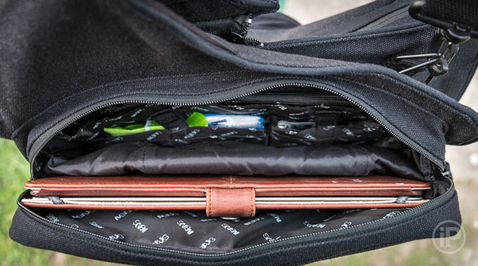 Внутри основной сумки-планшетки вроде бы ничего не изменилось, но вы присмотритесь к планшетному карману у задней стенки: