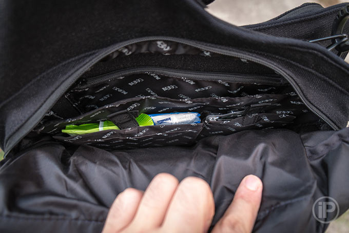 Стоит отметить, что в секции между сумками нашита довольно толстая накладка из неопрена, предотвращающая скольжение аксессуара на плече, и это одно из отличий в сравнении с MIXBAG первого поколения. В предшественнике тоже есть такая накладка, но она была сделана из другого материала.