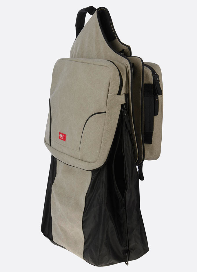 При желании одну часть сумки можно отсоединить и использовать только половинку в качестве традиционного мессенджера. Обычно это удобно в городском цикле, когда с собой носишь смартфон, кошелек, планшет, в данном случае еще и ноутбук поместится, плюс набор полезных мелочей, вроде салфеток, мультитула и т. п. Если же надо брать вещей побольше, например, в поездку на день-два в другой город, тогда пристегиваете вторую половинку с помощью молнии:
