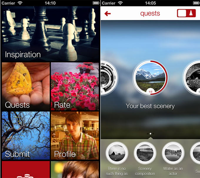 Для продвижения навыков в фотографии в массы было создано специальное приложение Photozeen [iTunes link], поддерживаемое соответствующим облачным сервисом, и на самом деле это настоящая бесплатная фотошкола. Вам предлагается пройти более 200 квестов на разные темы и жанры из области фотографии: портрет, пейзаж, правильная композиция и т. п. Выбираете квест, читаете простые инструкции, делаете так, как там написано и публикуете снимок в системе, получая живой отклик от участников этой своеобразной социальной сети, доступной в 26 странах.