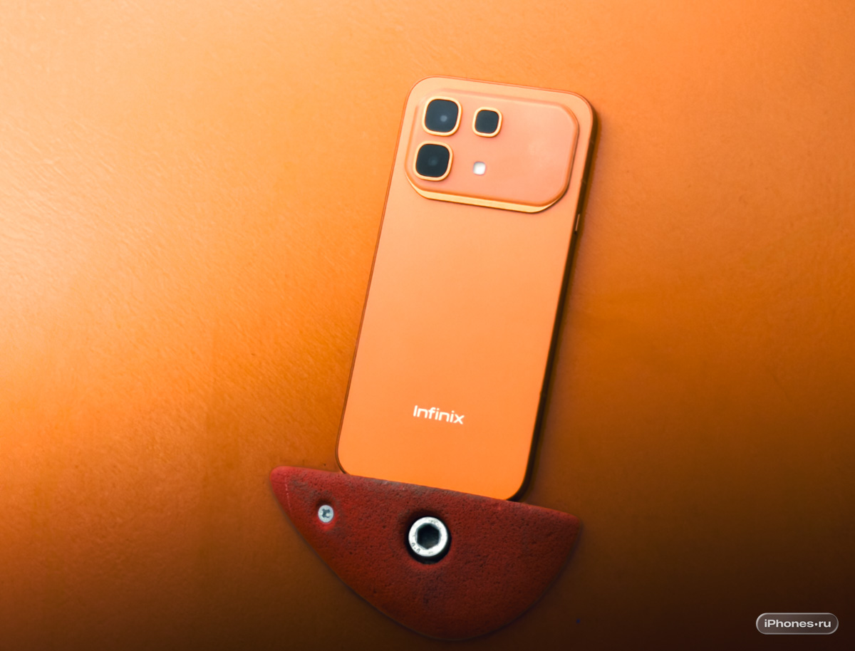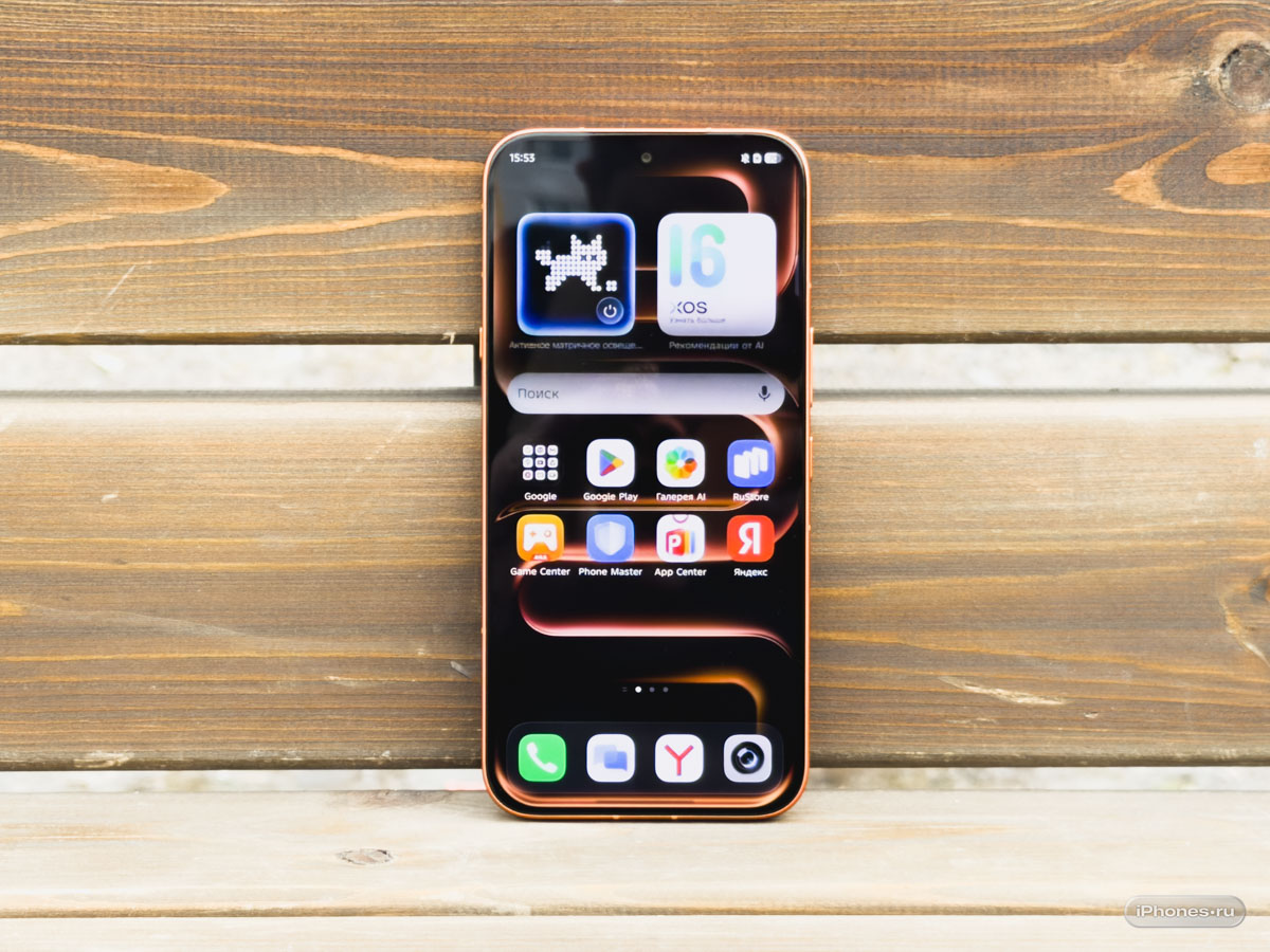 Телефон бросается в глаза трендовыми на 2026 год элементами во внешнем виде: плато, оранжевый цвет, стеклянная ОС, минимализм форм. Но всё это признаки флагманов, а в среднебюджетных устройствах такое встретишь редко.