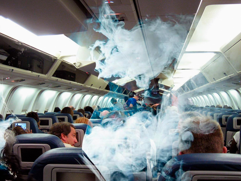 Они запрещены, как и сигареты. Штраф такой же, вплоть до аварийной посадки.