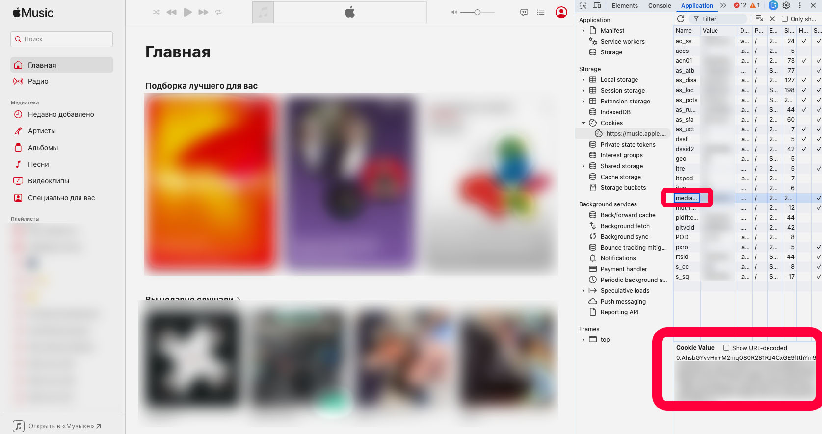 - Найдите параметр media-user-token и скопируйте его значение.