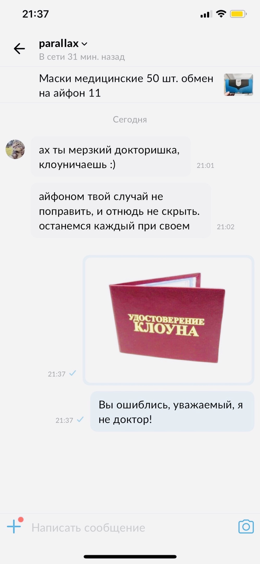 В первом за маску просят iPhone 7, во втором меняют 50 штук на iPhone 11.