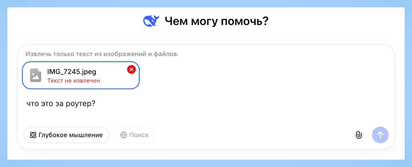 DeepSeek не умеет генерировать фото и видео, у него нет голосового режима и возможности диктовки запросов голосом.