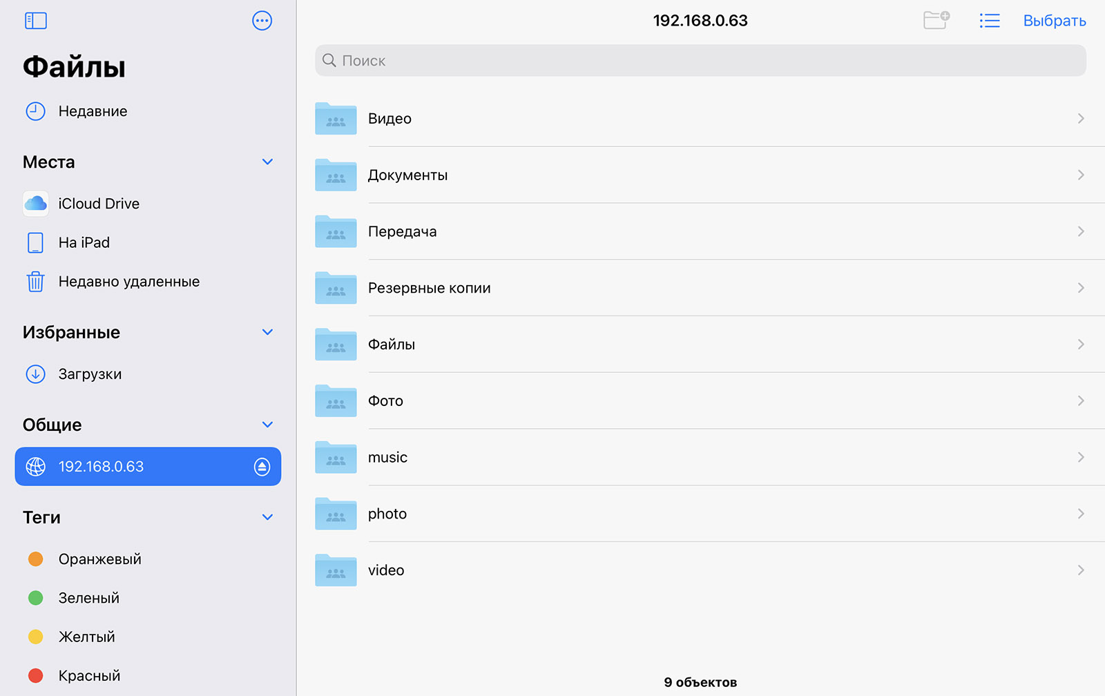 Файловый браузер iOS работает с сетевым диском абсолютно так же, как с локальным. Можно перекидывать туда файлы, скачивать их, открывать в приложениях на самом iPhone и iPad.