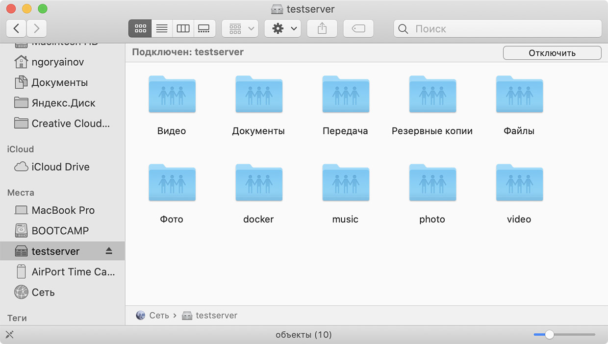Мой Synology не просто отображается как доступный сетевой диск – Time Machine видит конкретно папку для сохранения «тучных» файлов копий. Этой папке можно задать максимальный размер, и тогда по его превышению старые копии будут автоматически стираться. Всё работает одновременно на любых Mac в локальной сети. Так что теперь и мои MacBook, и моей жены автоматически «бэкапятся» дома несколько раз в неделю.