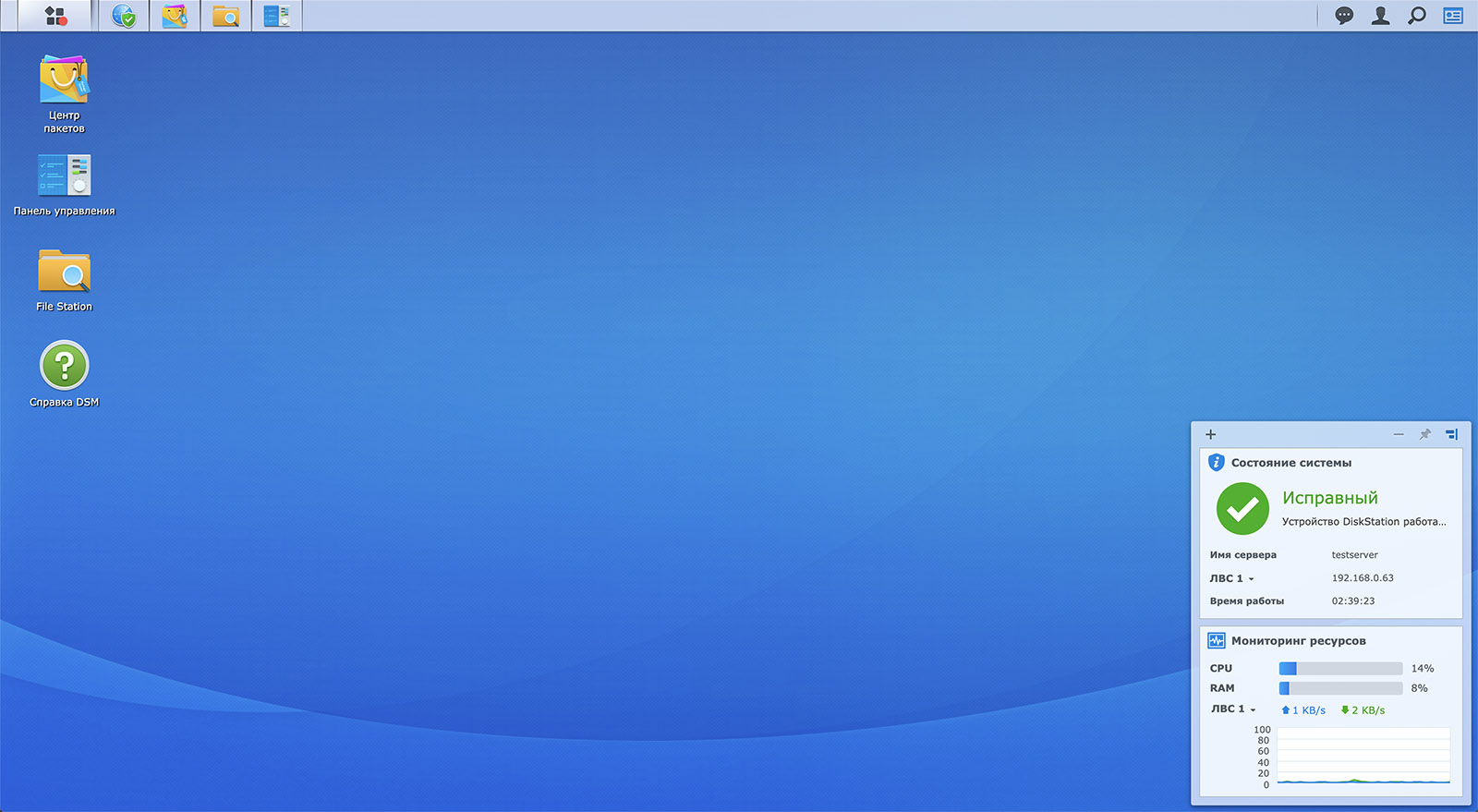Здесь не только понятный каждому интерфейс «окон», но и исключительно специализированное ПО для управления всеми аспектами хранилища и его безопасности. Есть даже поддержка установки приложений и расширений из Центра пакетов, такого встроенного «магазина».