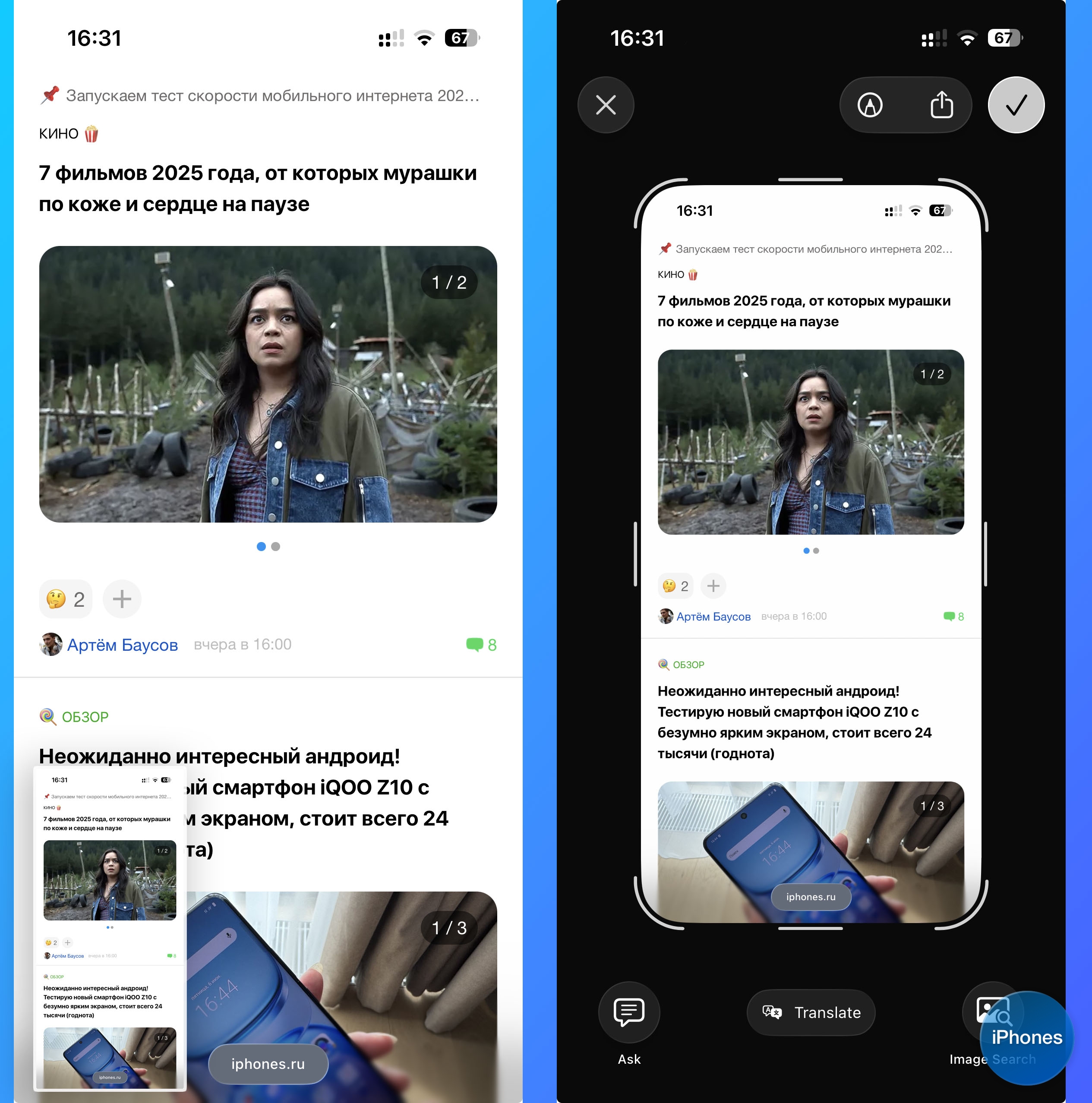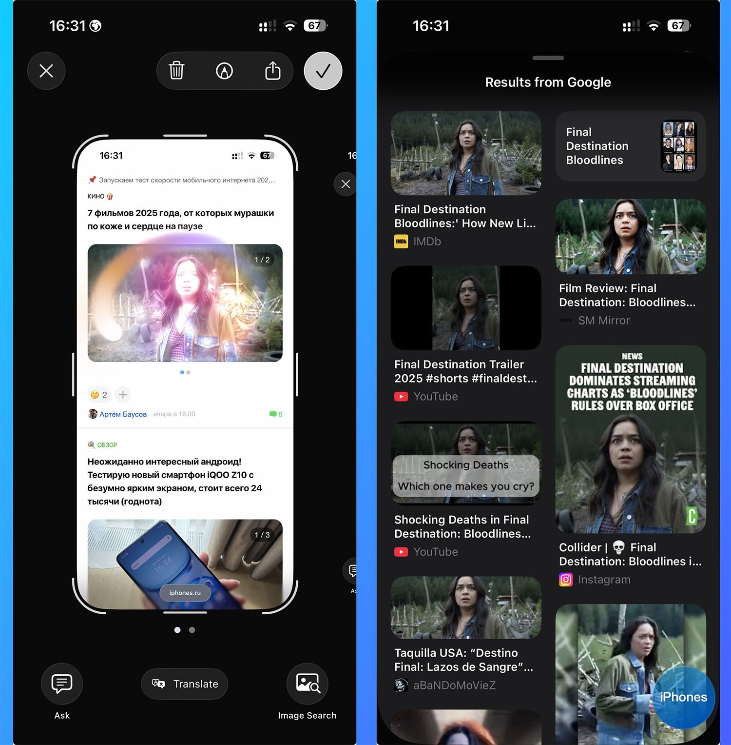 Фишка похожа на Visual Intelligence, которая появилась в iOS 18.2. Старое новшество позволяет сделать фото и найти изображение на нем в интернете, а новая фишка работает также, но со скриншотами.