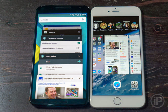 - Внешние динамики лучше у Nexus 6, по ушным — паритет, аудиовыход мощнее у iPhone 6 Plus.