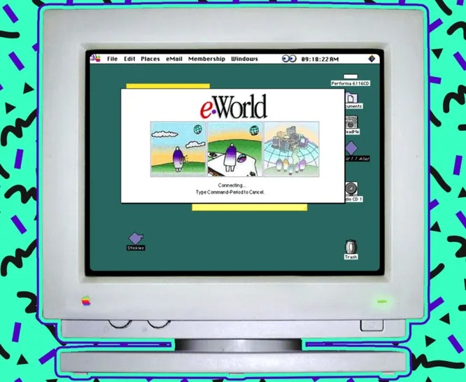 Apple eWorld — это онлайн-платформа, где размещались новости компании, раздавались программы и работали борды и форумы для общения. Ну, то есть на бумаге ничего необычного, да? Нюанс в том, что, во-первых, доступ туда был за 9 долларов в месяц, так еще и зайти можно было исключительно с Mac OS и никак иначе.