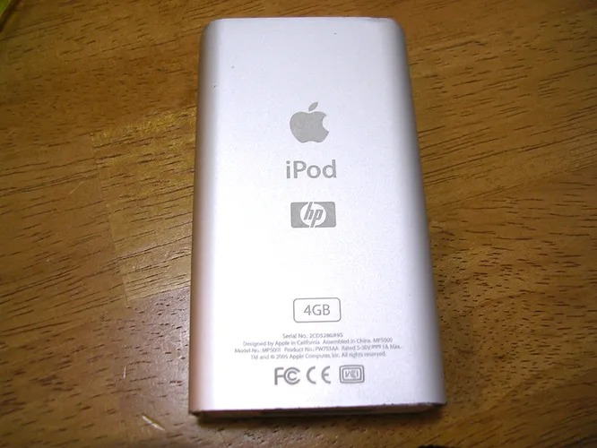 Дело в том, что на старте существования одного из лучших плееров мира у компании Apple не хватало мощностей удовлетворить бурный спрос потребителей на iPod. Тогда-то и было решено заключить стратегическое партнерство с компанией HP, чтобы выпускать часть iPod под их суббрендом и на местных производственных мощностях. Отсюда и дополнительный шильдик бренда на задней крышке.