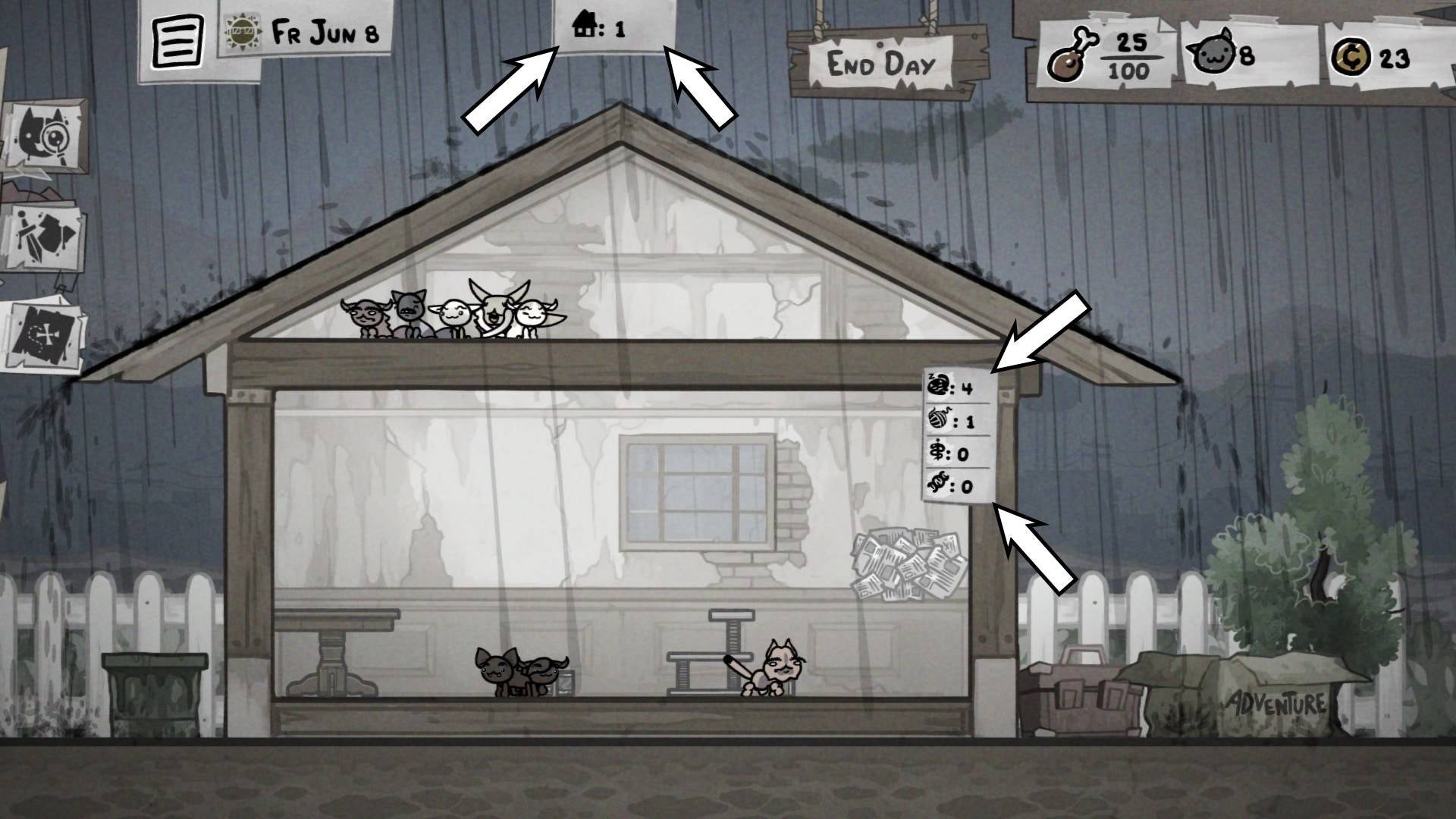 Отсюда и возникает точнейшая дилеммма: с одной стороны, котов надо размножать, чтобы результативно ходить в приключения (вечно сидеть в доме не получится, у вас просто кончится еда и животные начнут жрать друг друга), а с другой — их придется скармливать местным любителям животных в любом случае.