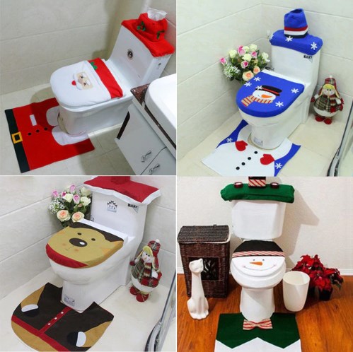 Нельзя обойти вниманием уборную, украшая дом к Новому году. Милые чехлы на унитаз — жемчужина вашего новогоднего декора, да и стоят недорого.