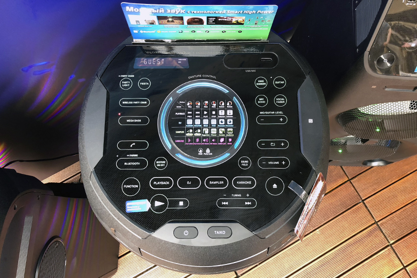 Также жестами можно включать DJ-эффекты, сэмплер и режим караоке, благо колонки имеют 2 микрофонных входа и даже полноценный вход для подключения электрогитары.