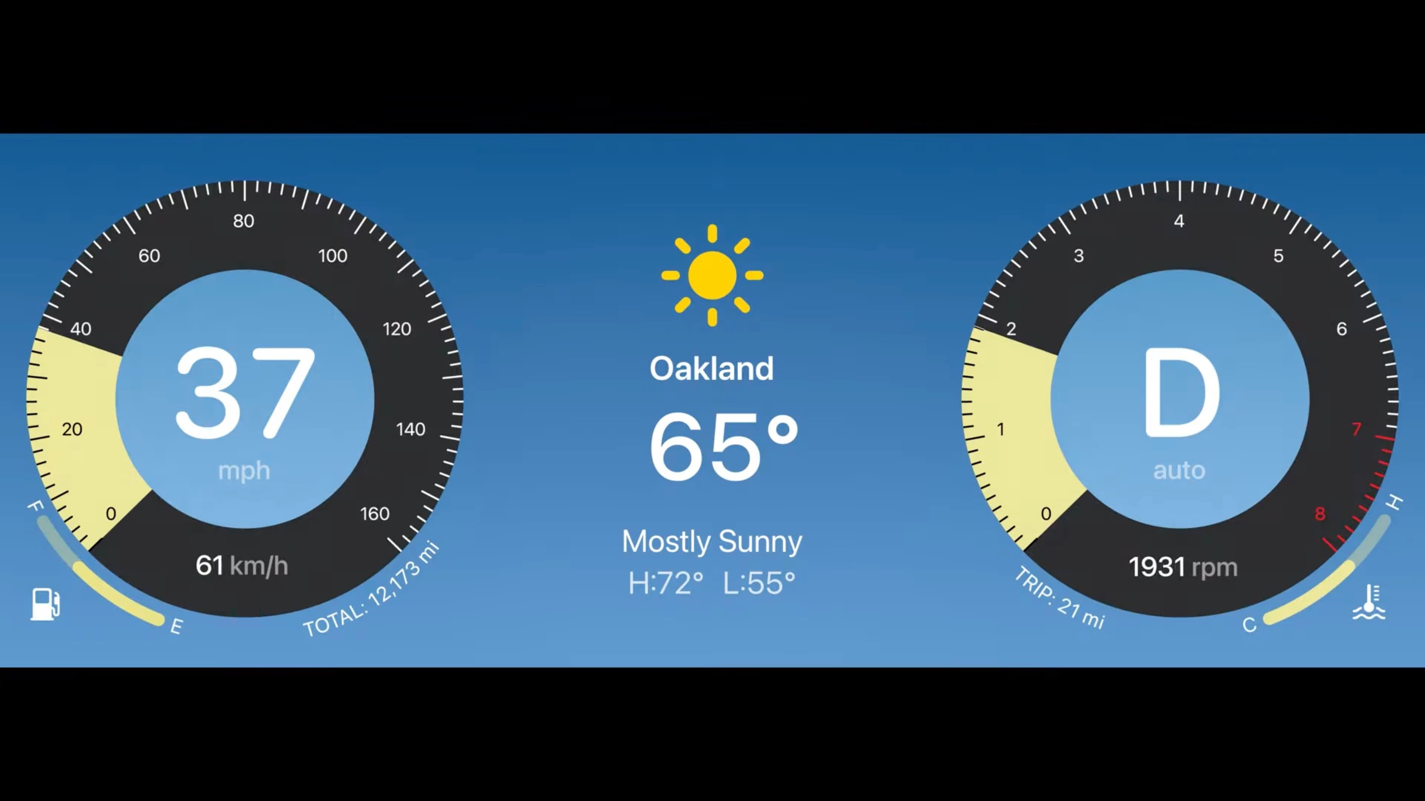 Спидометр, обороты, информация с датчиков уровня топлива и температуры охлаждающей жидкости, передачи — все это будет показываться в CarPlay.