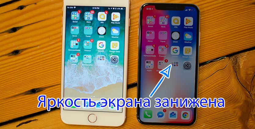 Теперь демонстративно выкручиваем яркость на iPhone без данной настройки и видим, что “проблемный” экран очень сильно уступает в максимальной яркости.